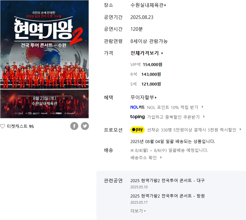 2025 현역가왕2 전국투어 [[수원]] 콘서트 티켓 예매
